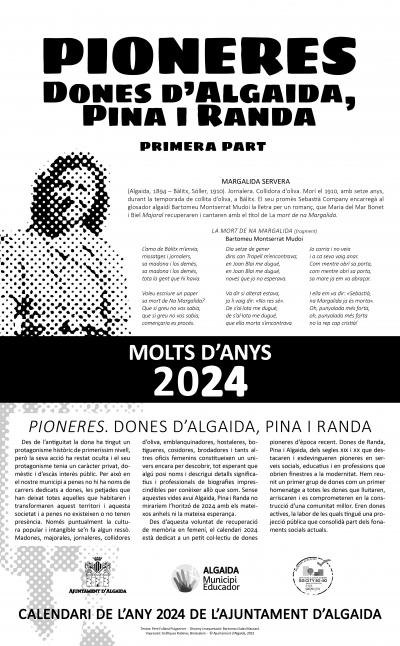 Calendari any 2024. Pioneres: Dones d'Algaida, Pina i Randa. Primera part.